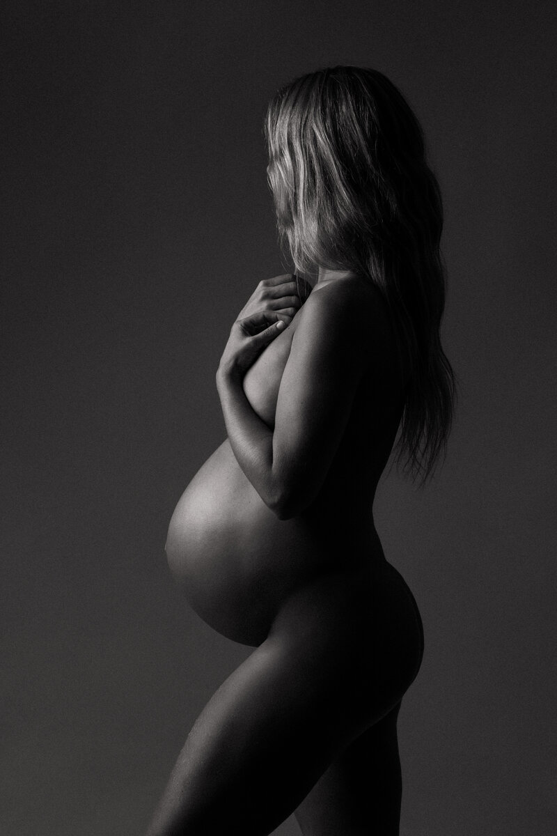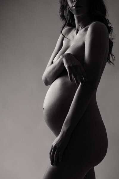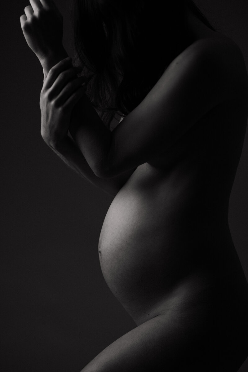 My approach to fine art maternity portraits is to strip back all other narratives to focus on just one - your beautiful blossoming body. Simplistic styling coupled with a black and white aesthetic allows for the story of your pregnancy to be focused on without the distraction of colour or other detracting elements.