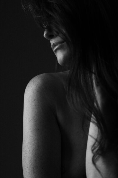 I would describe this as Intimate Fine Art or a blend of Beauty and Fine Art Boudoir Photography. It's a more artistic niche within the boudoir photography genre, where we create allure through light, shadow, and minimalist styling, rather than relying on bedroom settings and props often seen in traditional boudoir photography.